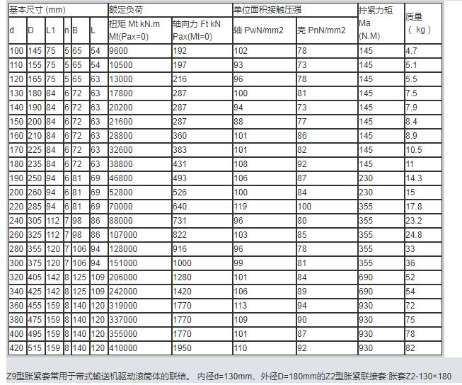 脹緊套聯(lián)軸器Z9型脹套的參數(shù)介紹